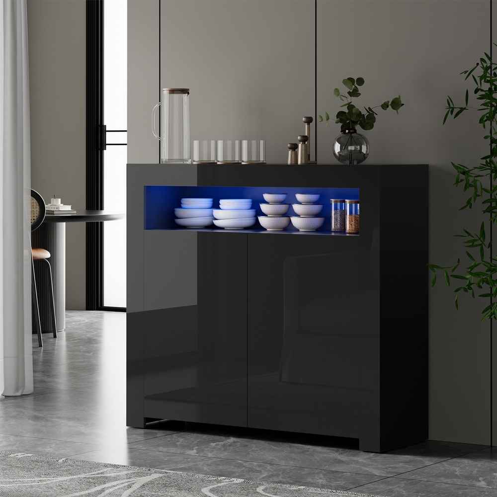 Bring a touch of modern glamour to your home with this stylish LED sideboard. Designed for both practicality and aesthetics, it features a streamlined profile, ample storage, and a dazzling RGB lighting system that creates an instant statement in any room.