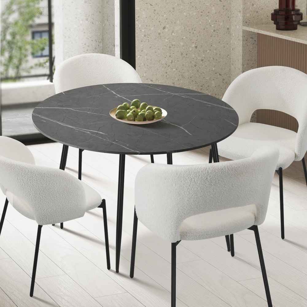 Crafted with a sturdy metal frame and a curved-edge tabletop, this dining table delivers strength and aesthetic appeal in equal measure. The gloss marble finish adds a refined touch, while the clean, minimalist silhouette suits a wide range of interior styles, from modern chic to relaxed contemporary.