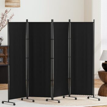 4 Panel Room Divider Wheeled Fabric Screen 217x172cm Black