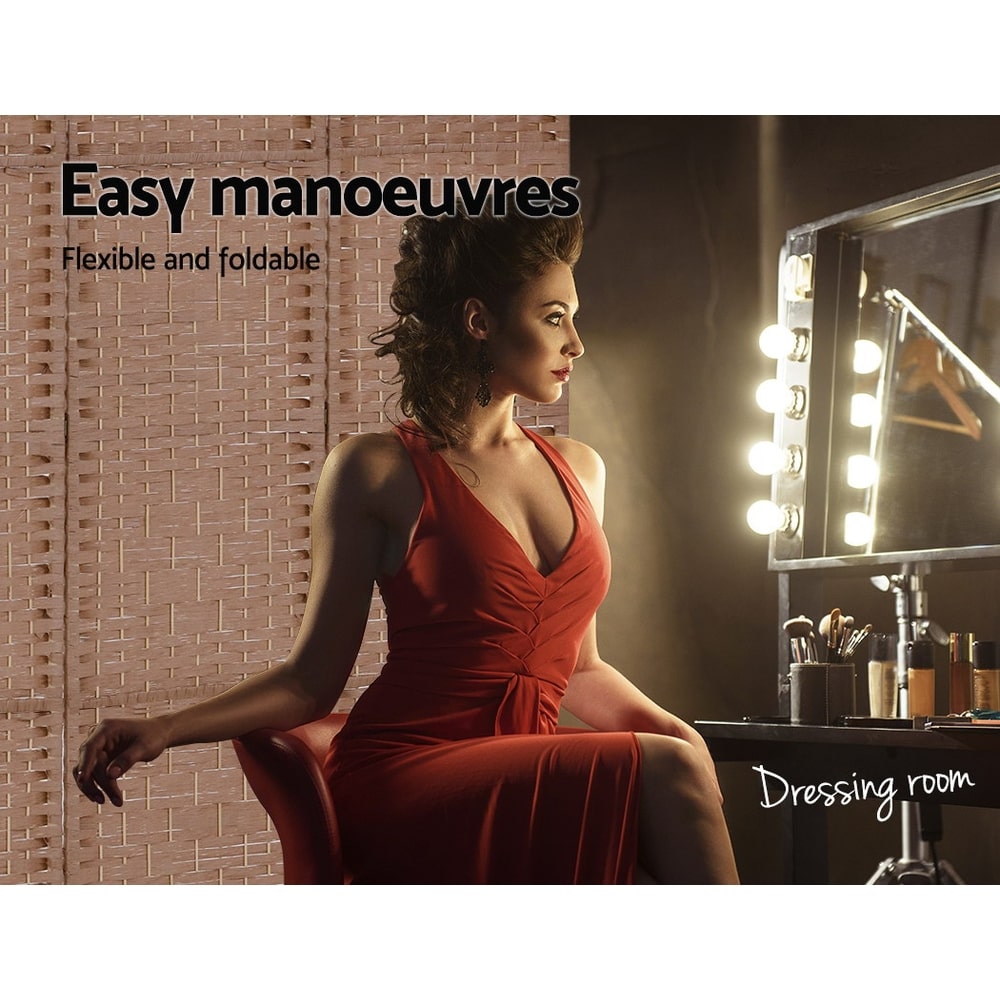 4 Panel Room Divider Screen 163x170cm Woven Natural