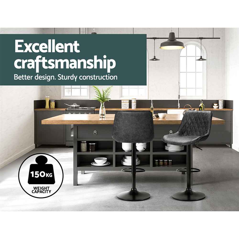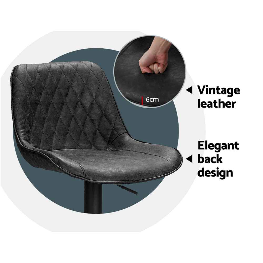 Featuring an elegant diamond backrest design with premium vintage-style PU leather upholstery, these stools combine comfort and durability. The thick foam padding ensures a soft seat, while the 360° swivel function makes socialising effortless.