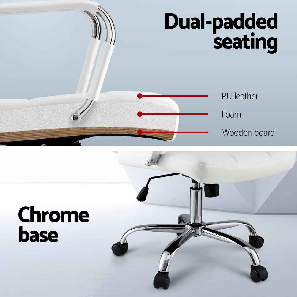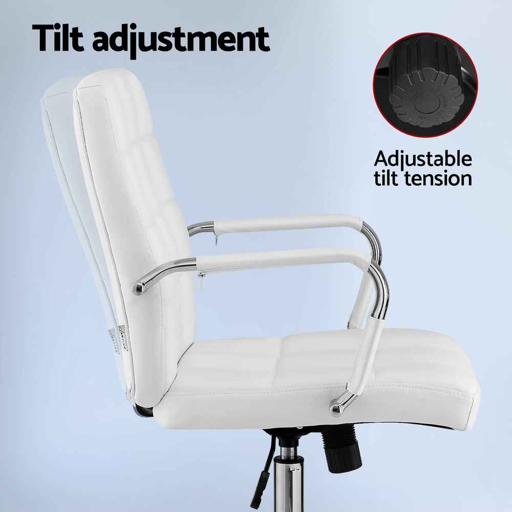 Experience superior comfort with this sleek mid-back office chair, designed for long hours of work or gaming. Upholstered in durable PU leather and supported by a sturdy chrome base, this chair combines style with functionality. The smooth-rolling dual-wheel castors ensure effortless mobility, while the ergonomic design promotes proper posture.