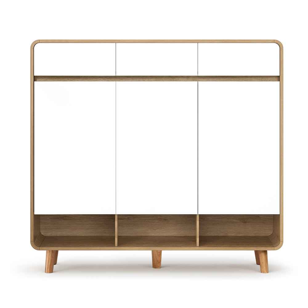 With three large drawers and five tiers of storage, this shoe cabinet provides generous space for all your footwear, from sneakers and flats to boots and heels. Its clean white and pine finish complements any modern or Scandinavian-inspired interior, creating a fresh, organised look in your entryway or hallway.