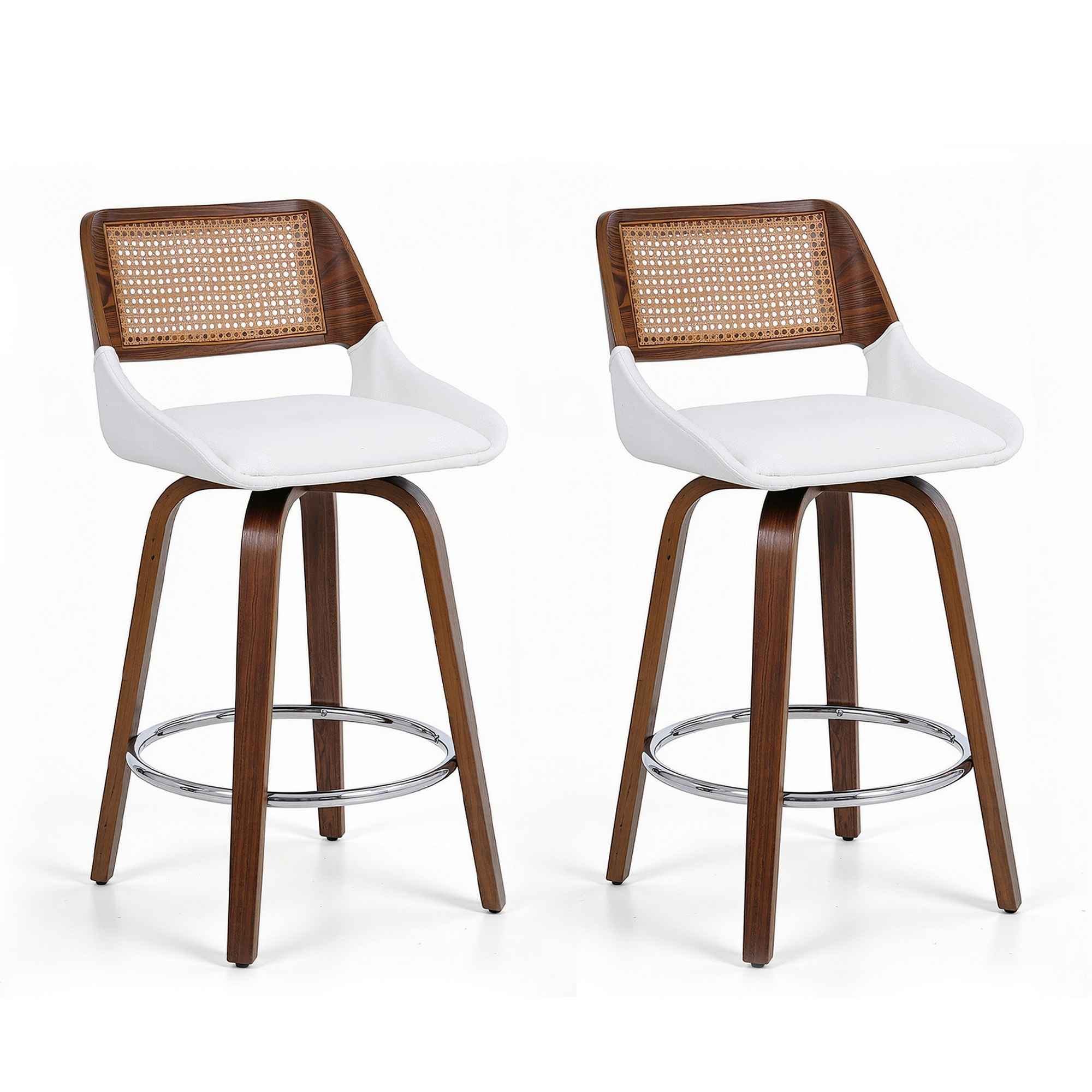Sienna Swivel Bar Stool Set of 2 White and Rattan