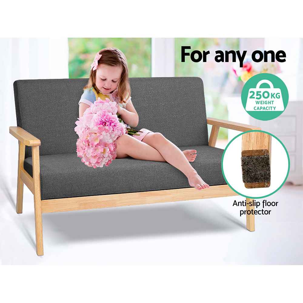 Skane 2-Seater Sofa – Grey Scandinavian Faux Linen Lounge Couch