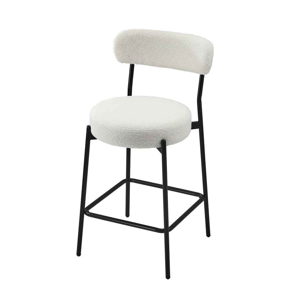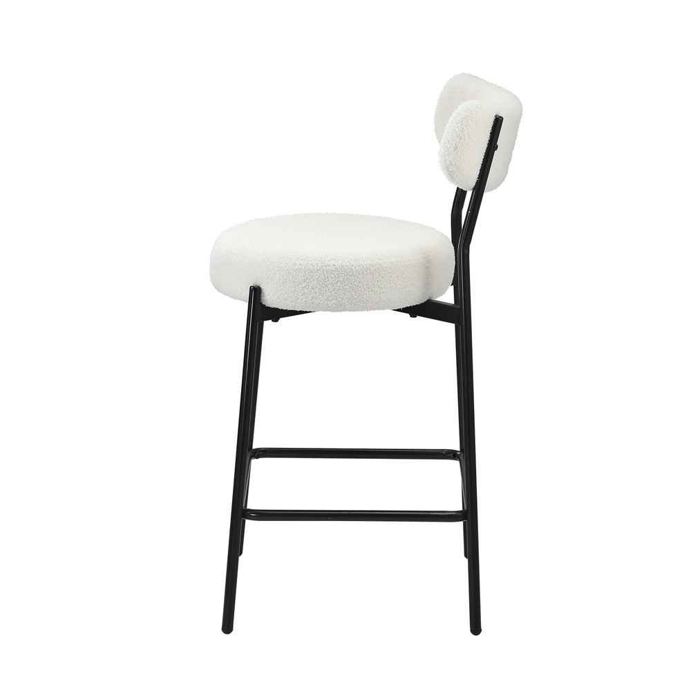 Snowball Bar Stool – Set of 2 (Bouclé Upholstery, Black & White)