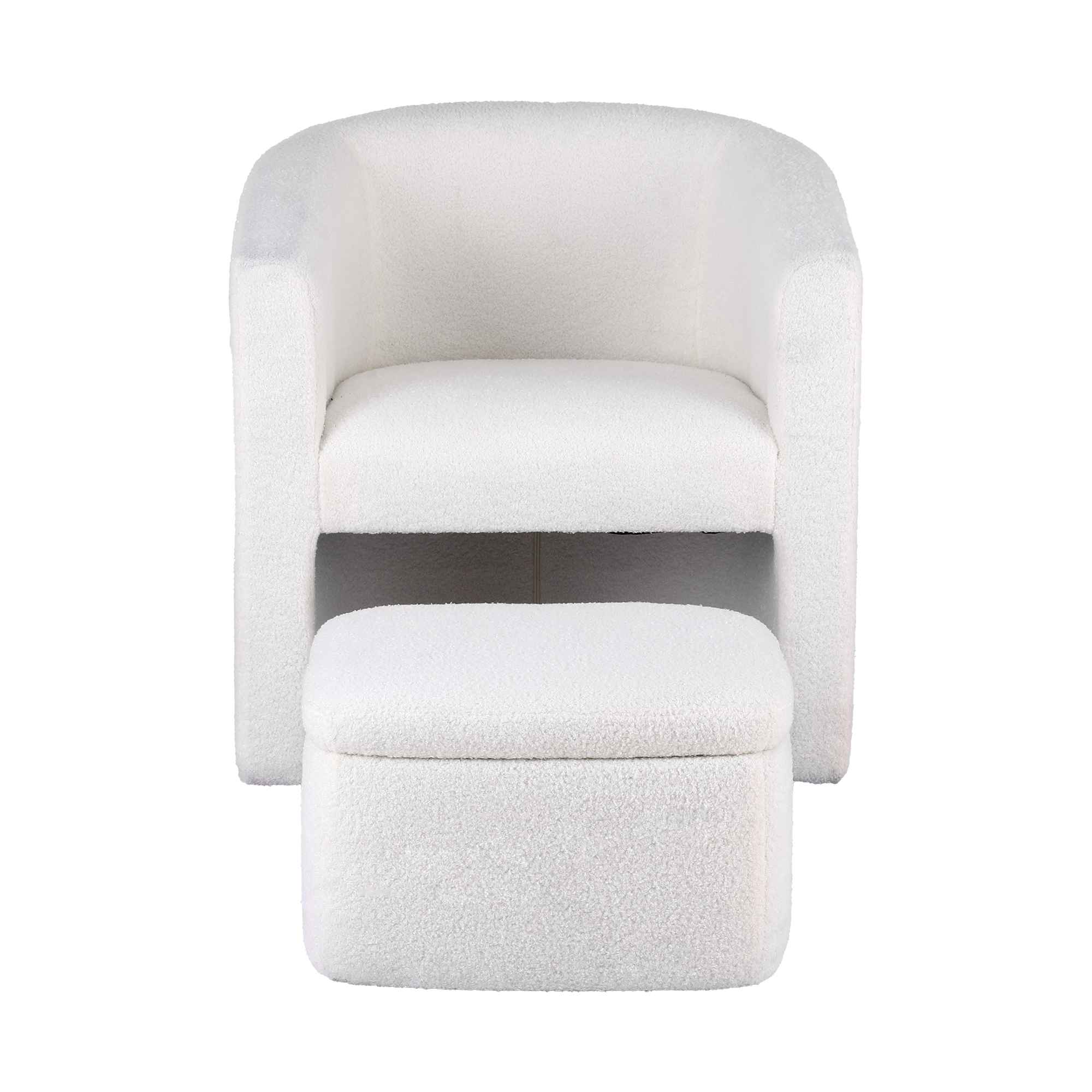 White Sherpa Armchair and Storage Ottoman Set for Cosy Comfort