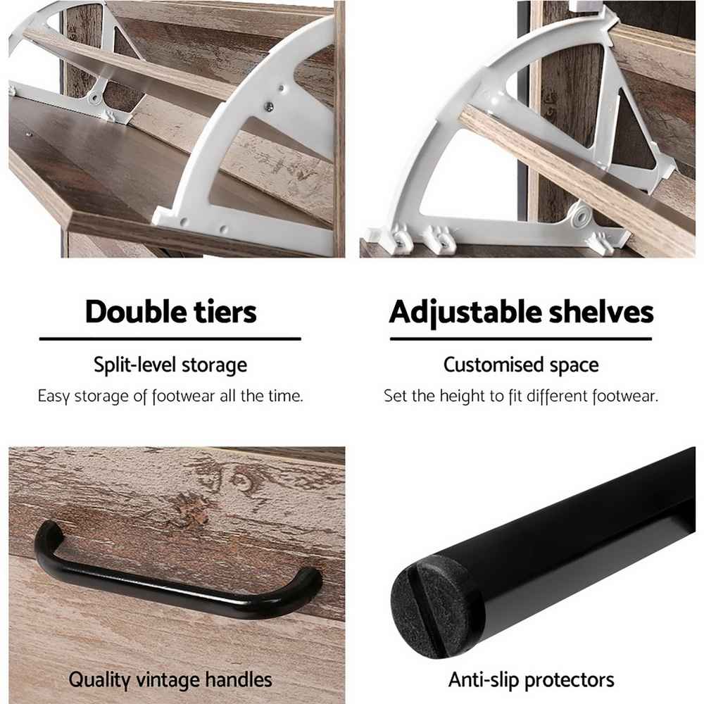 Featuring adjustable internal shelves, this shoe cabinet easily accommodates different footwear styles, including sneakers, heels and boots. Each compartment includes two rows of storage, making it simple to organise shoes neatly and access them whenever needed.