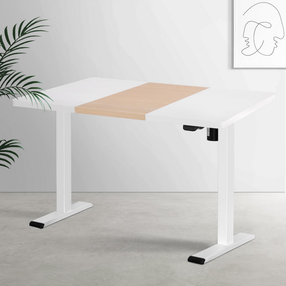 Standing Desk SINGLE Motor White Frame White Pine Desktop – 140cm x 70cm