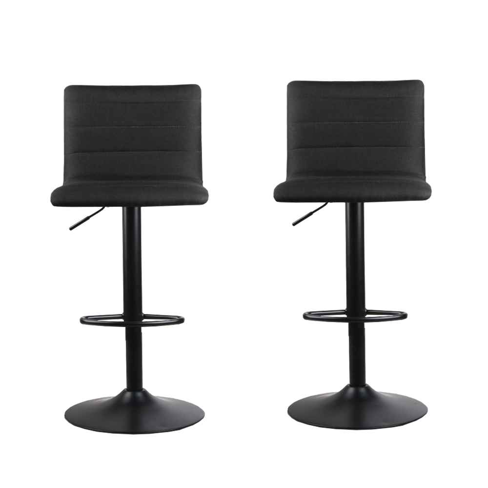 Set of 2 Faux-Linen Kitchen Bar Stools – Black