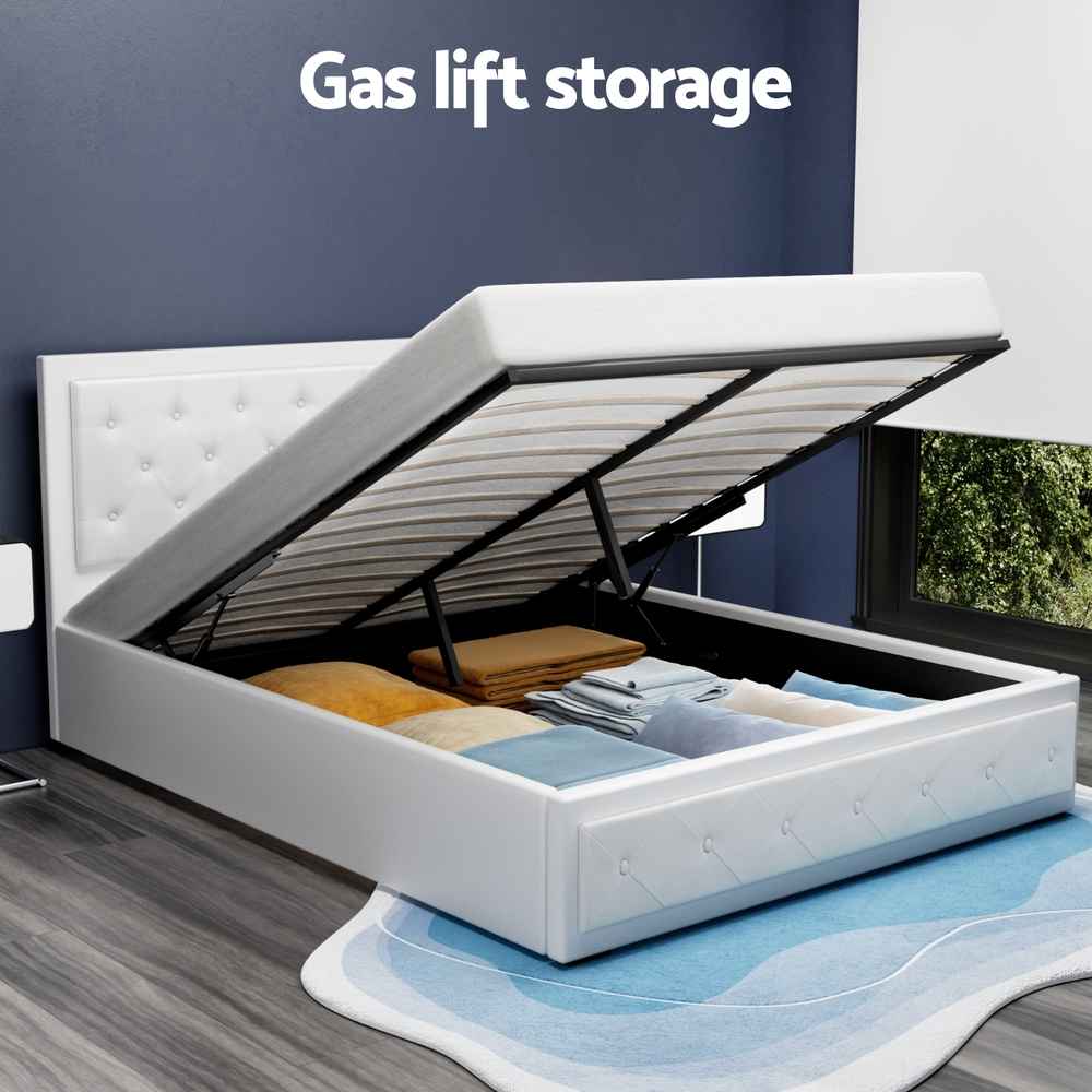 Transform your bedroom with a modern gas lift bed frame that combines sleek style, clever storage and everyday comfort. Upholstered in premium PVC leather, this statement piece features a beautifully tufted Scandinavian-inspired headboard that adds timeless sophistication to any space.