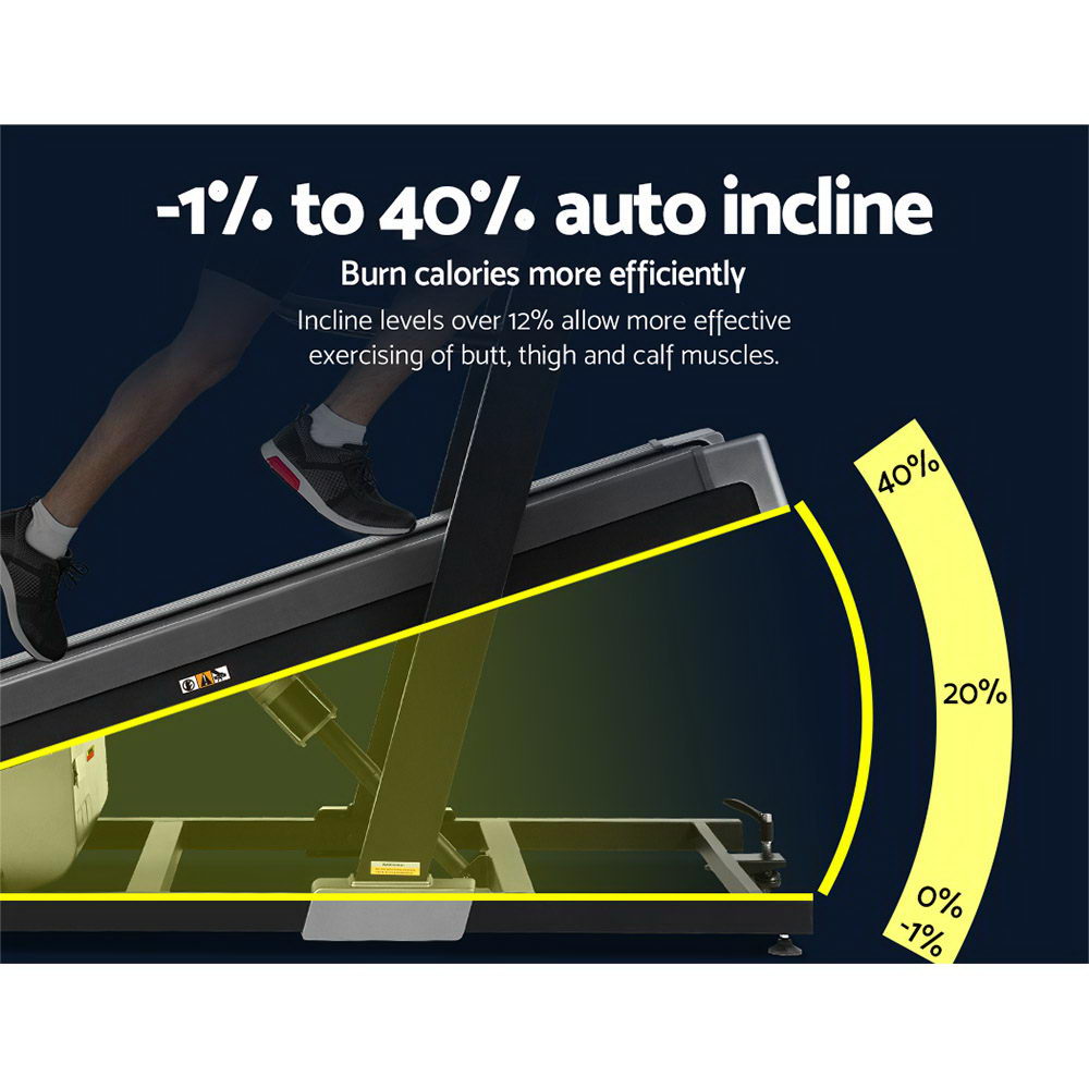 Want a more varied workout? Something that is easy on your joints yet efficient? Well, our Electric Incline Trainer Treadmill certainly fits the bill. Sturdy with its powder-coated steel frame, the incline trainer allows you to perform essential cardio exercises within the comfort of your home. It has all the features of traditional treadmills, but what sets it apart is the higher incline levels. With auto incline between -1% and 40%, you can simulate climbing and hiking outdoors to maximise your exercise efficiency. Walking at a high incline at lower speeds burns just as many calories as jogging or running on a level surface, yet is much easier on your joints with lower impact.
