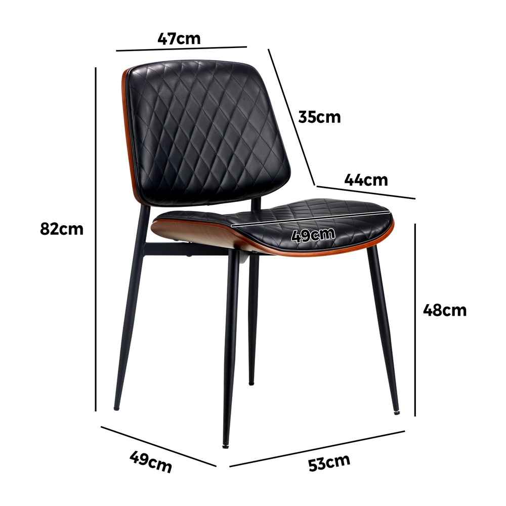 UBI Dining Chairs Leather Seat Metal Legs Black (Set of 2)
