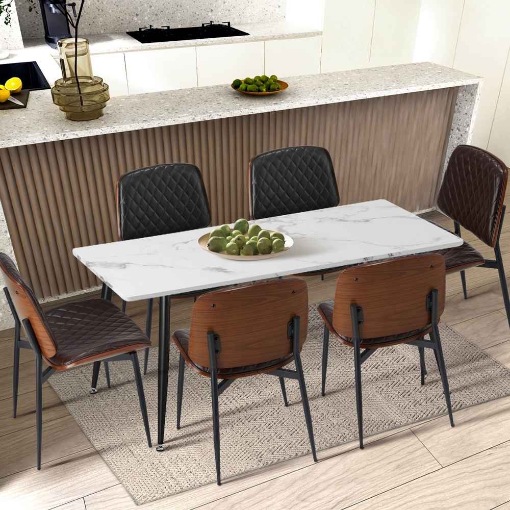 UBI Dining Chairs Leather Seat Metal Legs Walnut