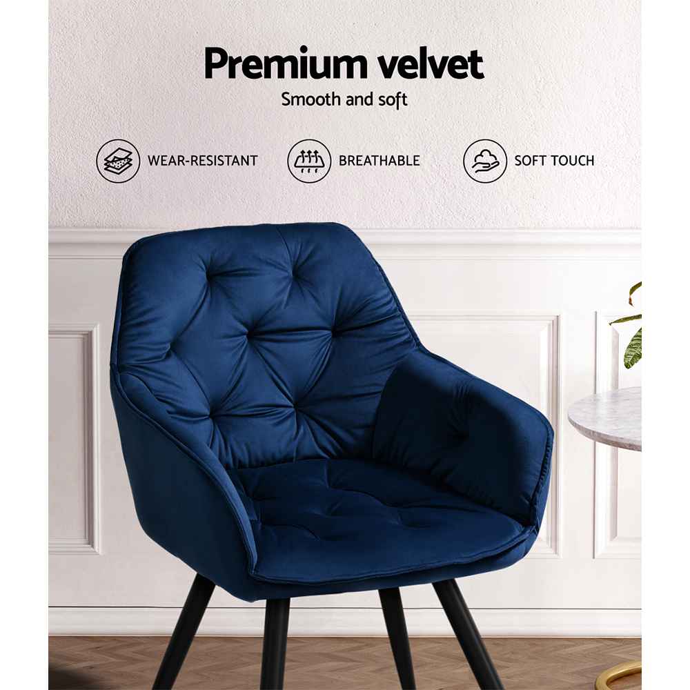 Elegant Velvet Dining Chairs – Blue (Set of 2)