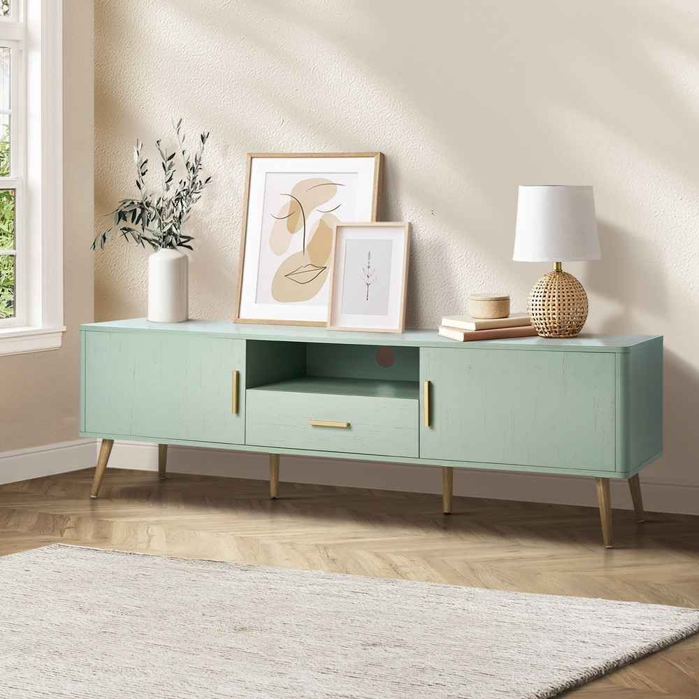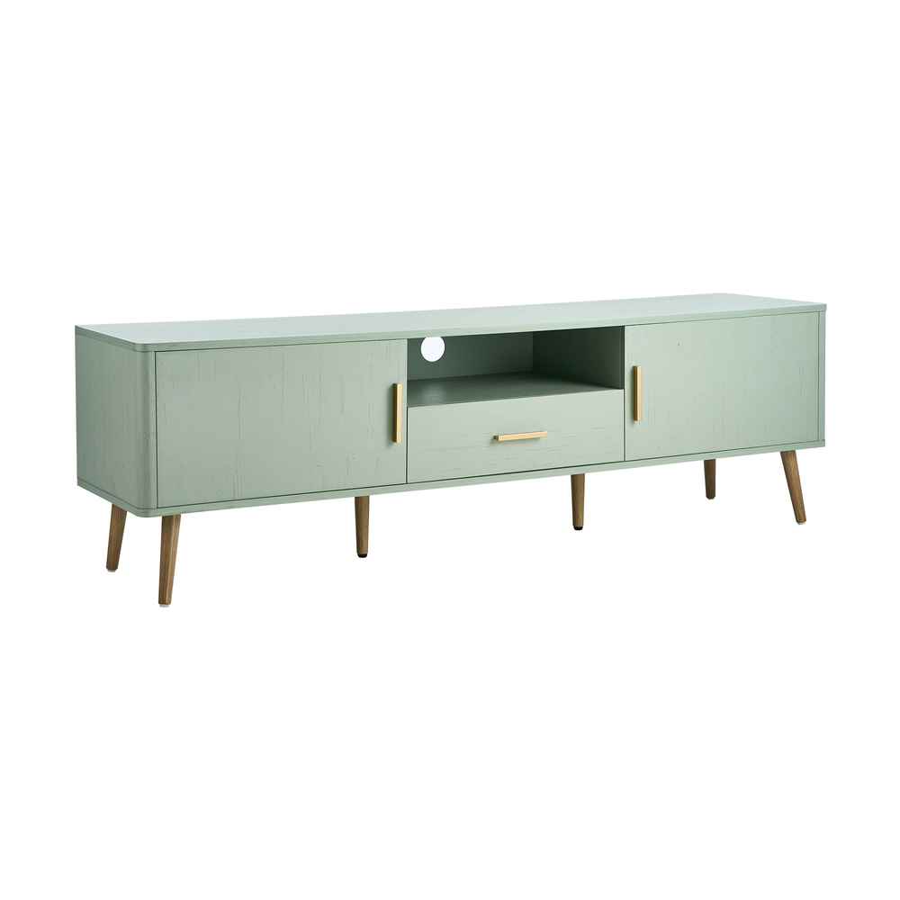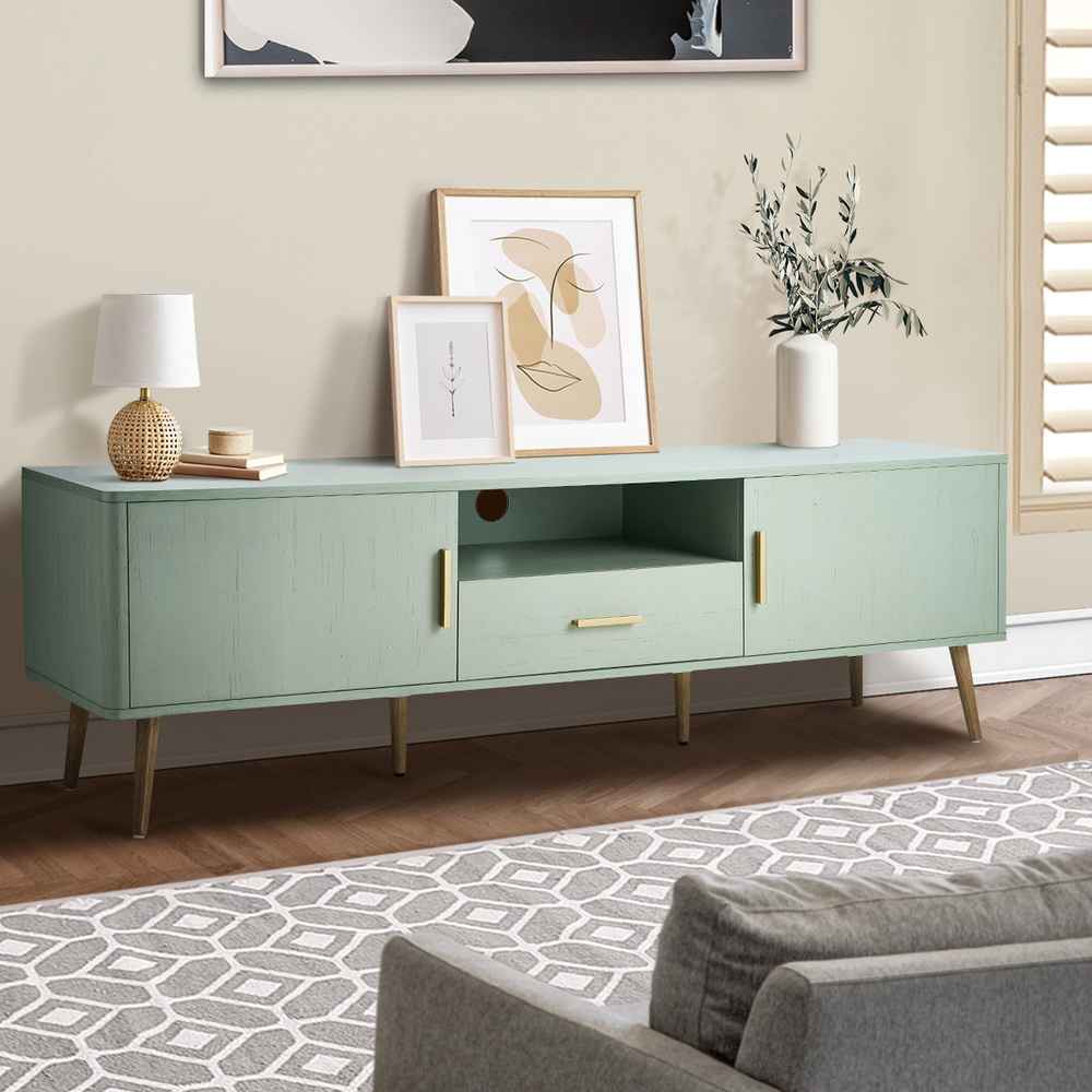 The spacious tabletop provides a stable platform for your television while allowing room for decorative pieces, speakers, or display items. Beneath the surface, the smart storage layout combines open shelving with concealed storage to help keep your entertainment area tidy and clutter-free.