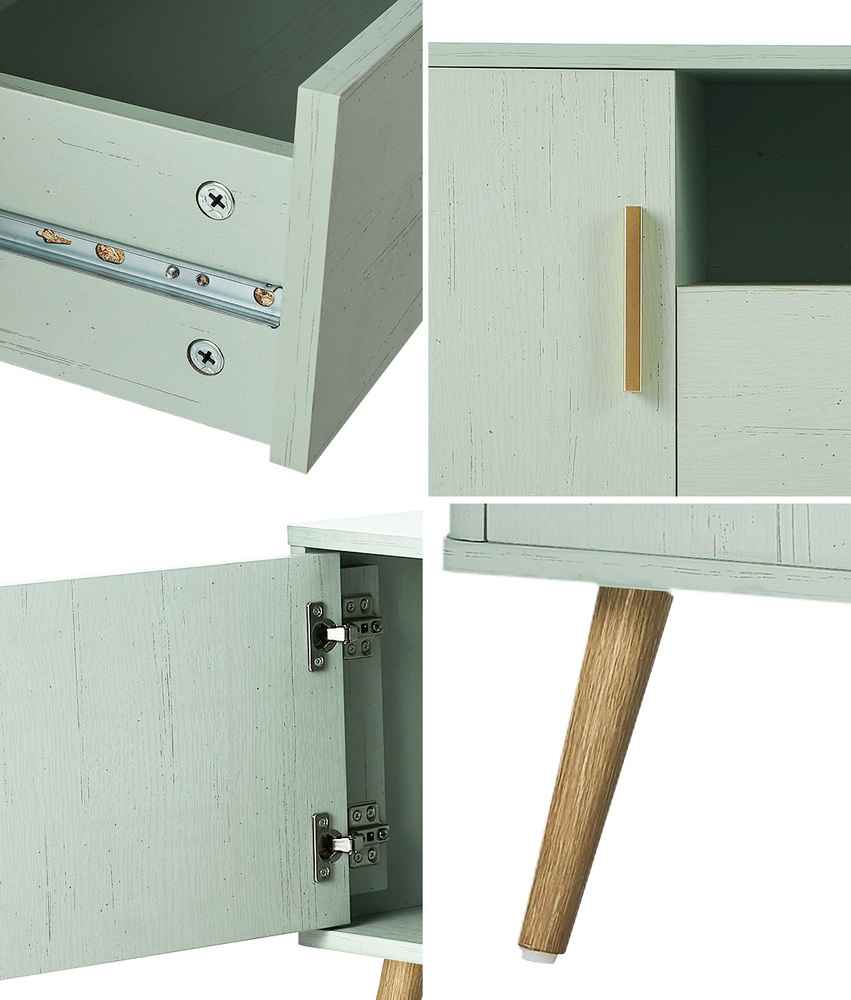The 15mm particle board structure provides strength and stability, while sturdy gum wood legs offer reliable support and a modern splayed-leg silhouette. Strong steel hinges and anti-slip feet further enhance durability, ensuring the unit remains stable and secure.