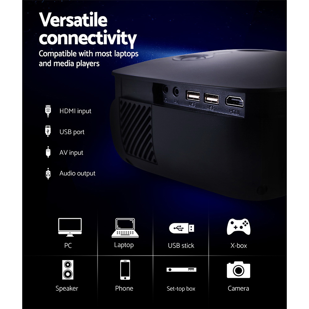 Portable Mini Video Projector 1080P Wifi Home Theater HDMI Black