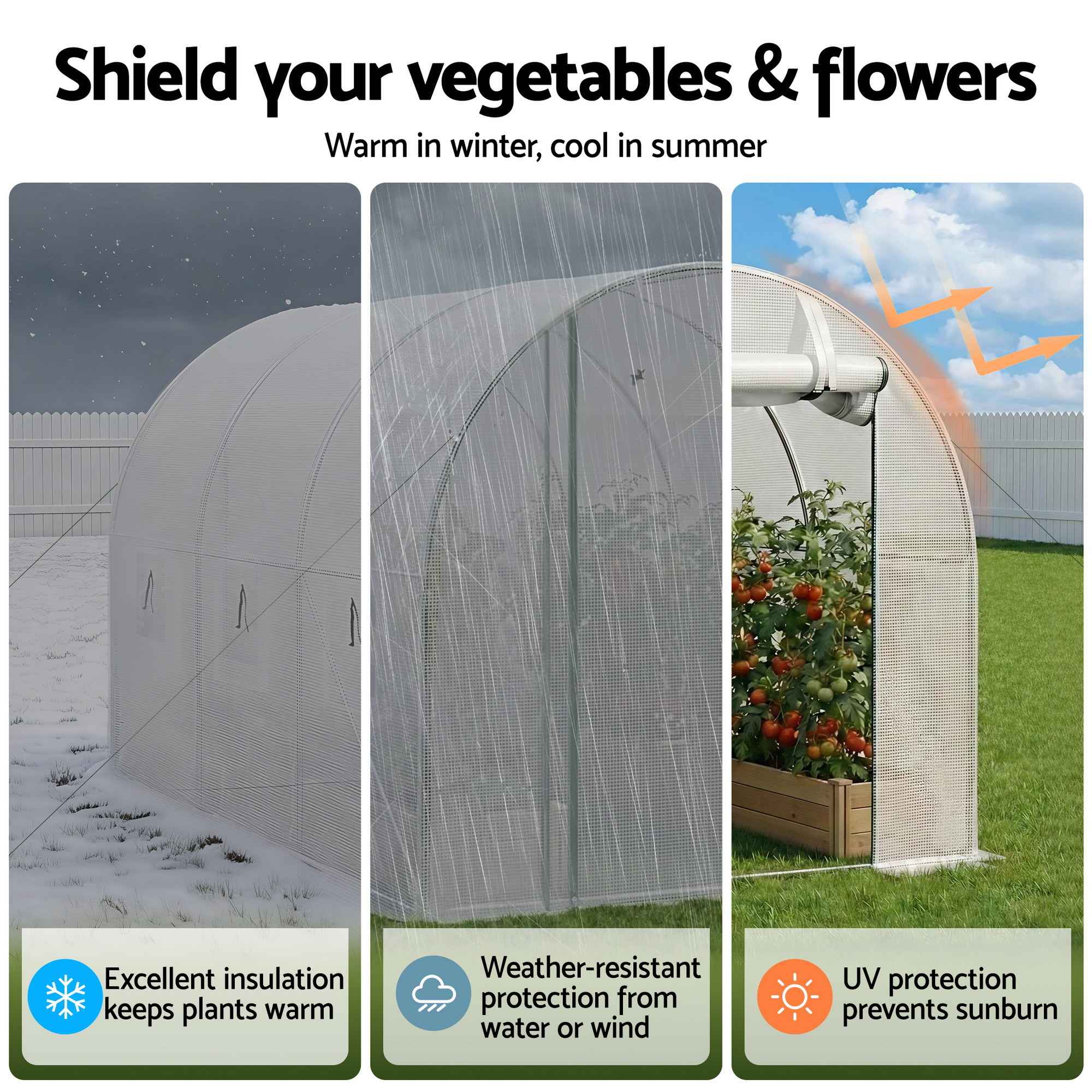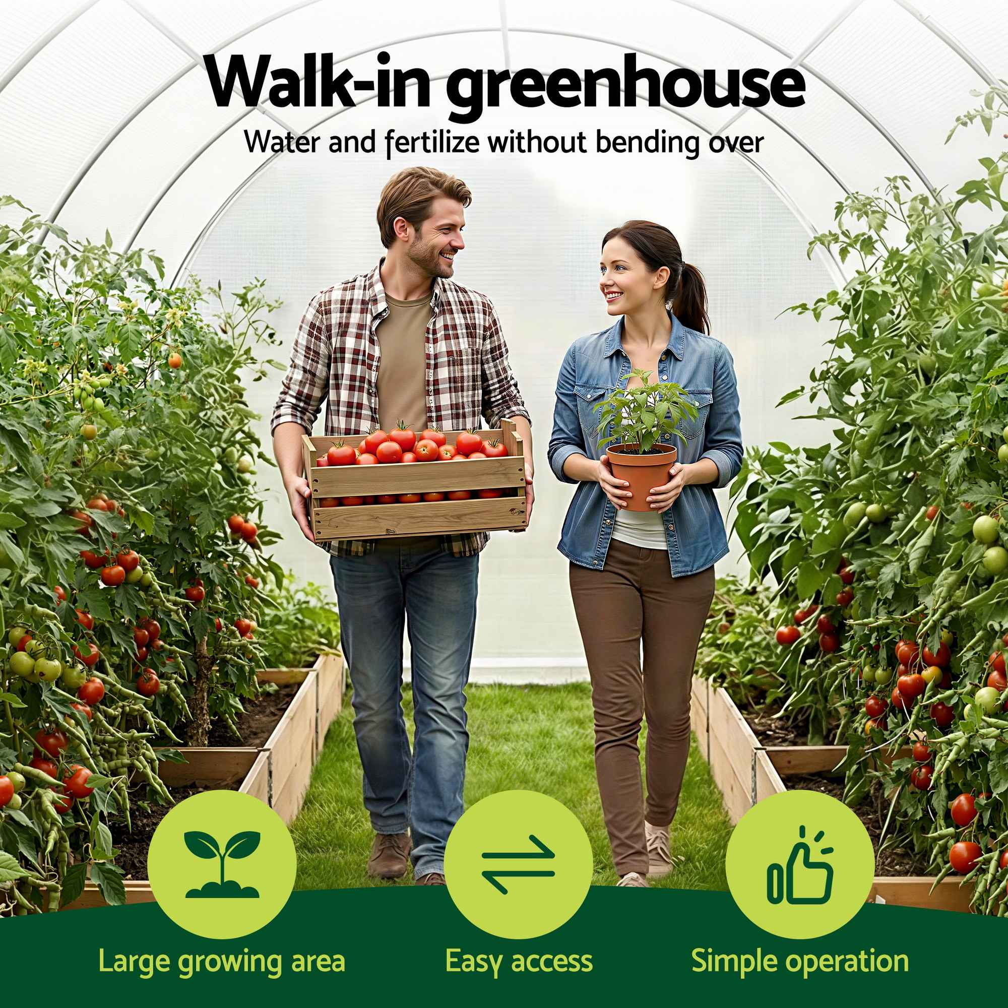 Create a more reliable growing environment with this walk-in greenhouse, designed to help protect plants and support healthier growth in changing Australian conditions. Spacious, practical and easy to access, it is ideal for home gardens and light commercial use where vegetables, herbs, seedlings and flowers need extra protection through the seasons.