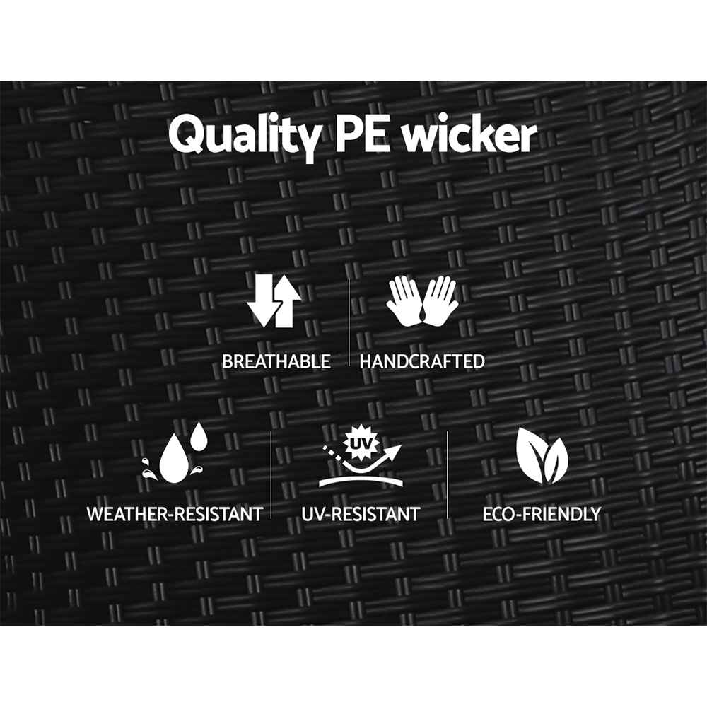 Crafted from UV-resistant and weather-resistant PE wicker, this recliner set is made to withstand outdoor conditions without rust, corrosion or fading.