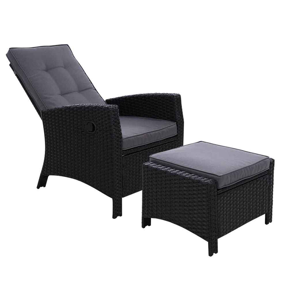 Wicker Recliner Chair and Ottoman Set for Outdoor and Indoor Relaxation