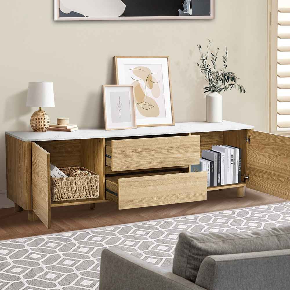 The long 160cm top comfortably suits TVs up to 60 inches, with plenty of room for speakers, consoles, décor and everyday essentials.